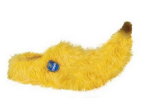 My company has been pitching custom promotional items to the Chiquita Brand Co. So, I have been spending a large part of the week creating a lot of banana shaped items. Along with the many phallic connotations that have been made with creating some of these items, some of them have been downright comical. I was asked to create a slipper for the presentation, and below is one of the mock ups I did.